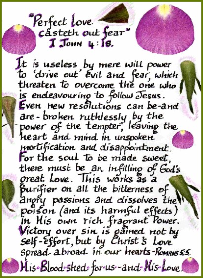 "There is no fear in love; but perfect love casteth out fear: because fear hath torment. He that feareth is not made perfect in love. We love Him, because He first loved us. If a man say, I love God, and hateth his brother, he is a liar: for he that loveth not his brother whom he hath seen, how can he love God whom he hath not seen? And this commandment have we from Him, That he who loveth God love his brother also."